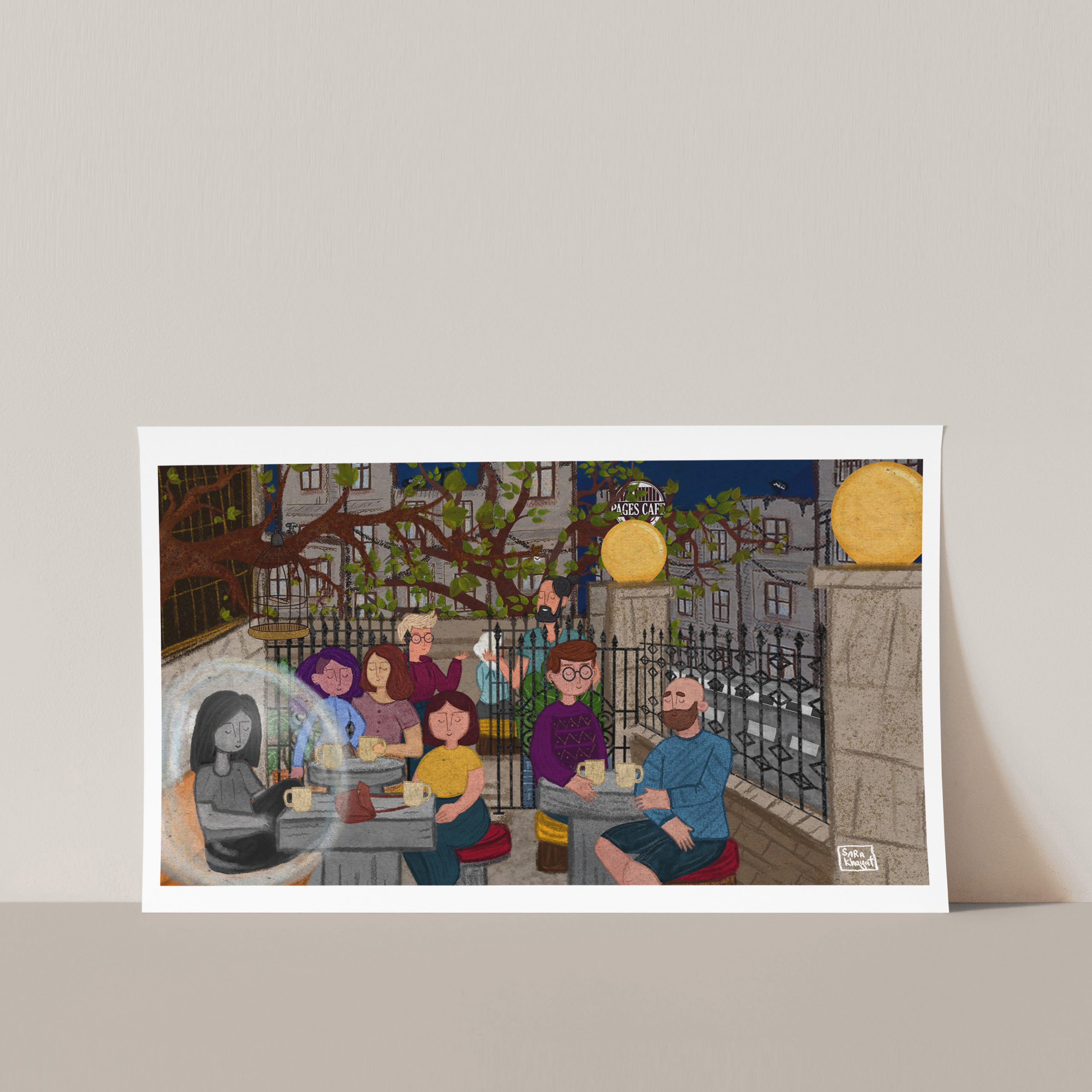 “A Small Cafe in Damascus” was exhibited as part of “SyriaUntold” series on LGBTIQ Syria, In which Sara Khayat Talks About her own Journey of discovery and self realization search in her own memory as she wonders: “when did I know that I was different, before even knowing whether it was a crime or not?” She paints her own memory of a small café in a very well-known area in Damascus.