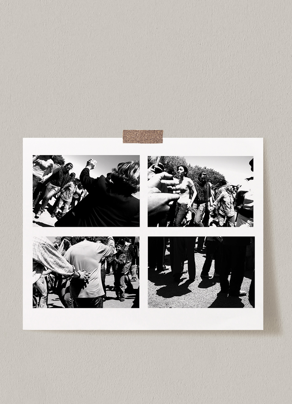 Here, through the use of the negative camera, Namer stresses her fear of shooting the gatherings, because of the tension that the regime could create. Furthermore, pushed by the awareness of the oppressive control by the state of the public space, she aims to show the deep contrast between the joy of the crowds while they play theater and music on the stage and the fragility of these moments. Indeed, these could potentially be just the last volatile instants of collective self-determination that the camera captures and archives before the repression comes. In both series, the questions of: Are the people consciously taking part by dancing and playing in public spaces, or are they just accepting the exceptional bites of freedom allowed by the regime? remain open.